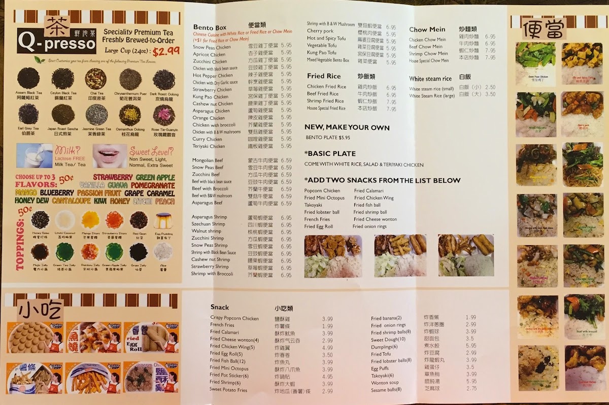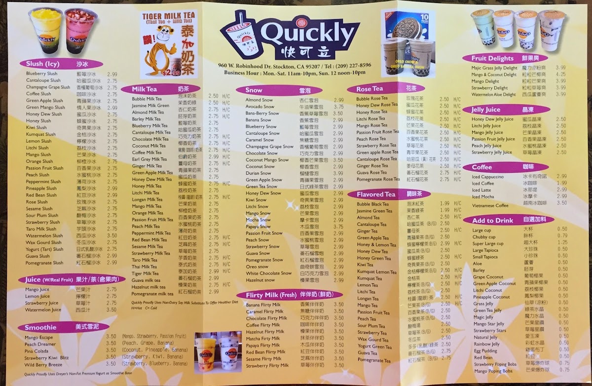 Quickly offers a relaxed and approachable menu that blends familiar Asian flavors with refreshing, playful drinks. Whether you're seeking a casual meal or a comforting snack, the menu presents a variety of options suited for any time of day. From warm dishes like wonton soup and chow mein to satisfying bites such as salt and pepper shrimp and steamed dumplings, the food is straightforward and comforting, perfect for a laid-back lunch or dinner.